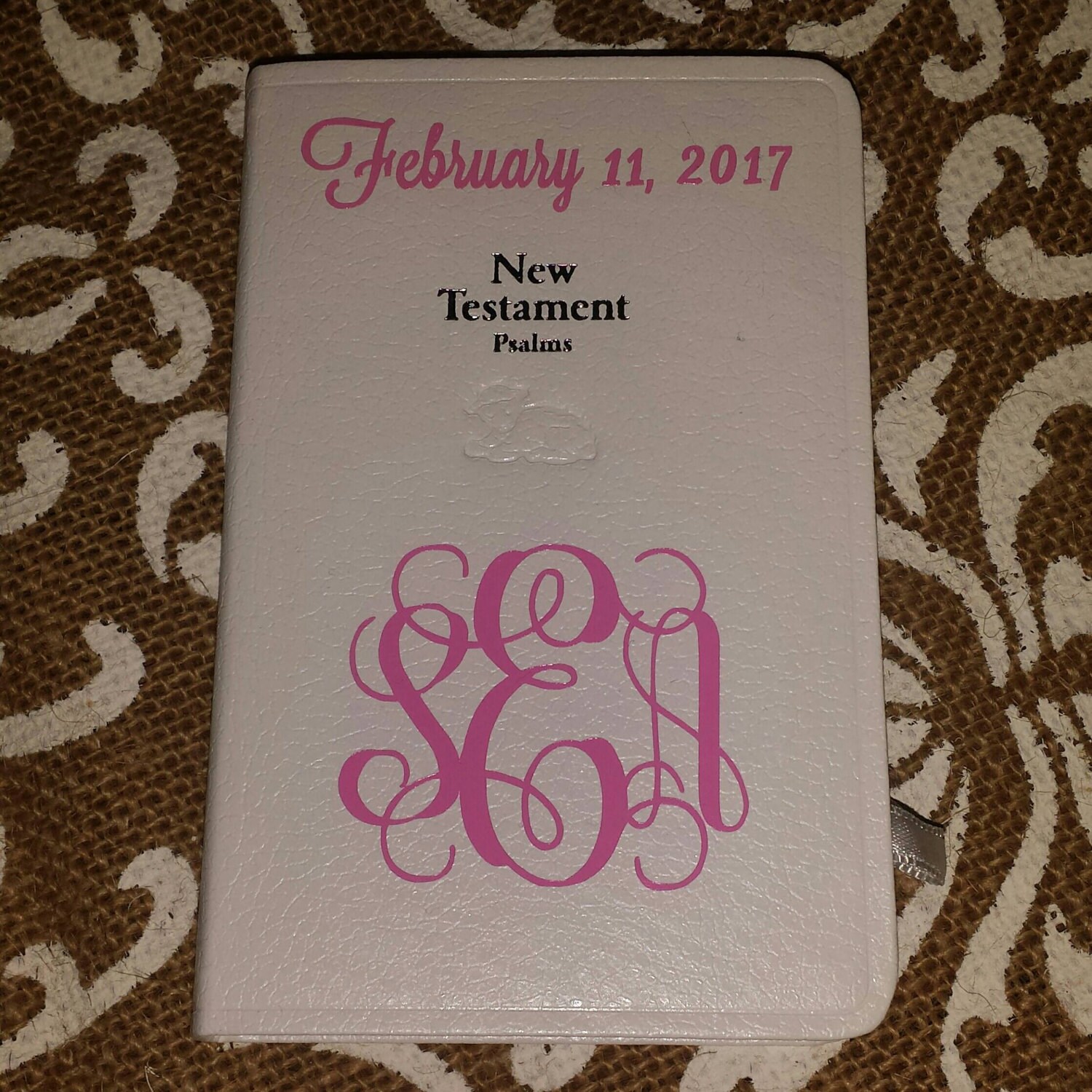 Monogrammed New Testament King James Version Holy Bible in black or white.