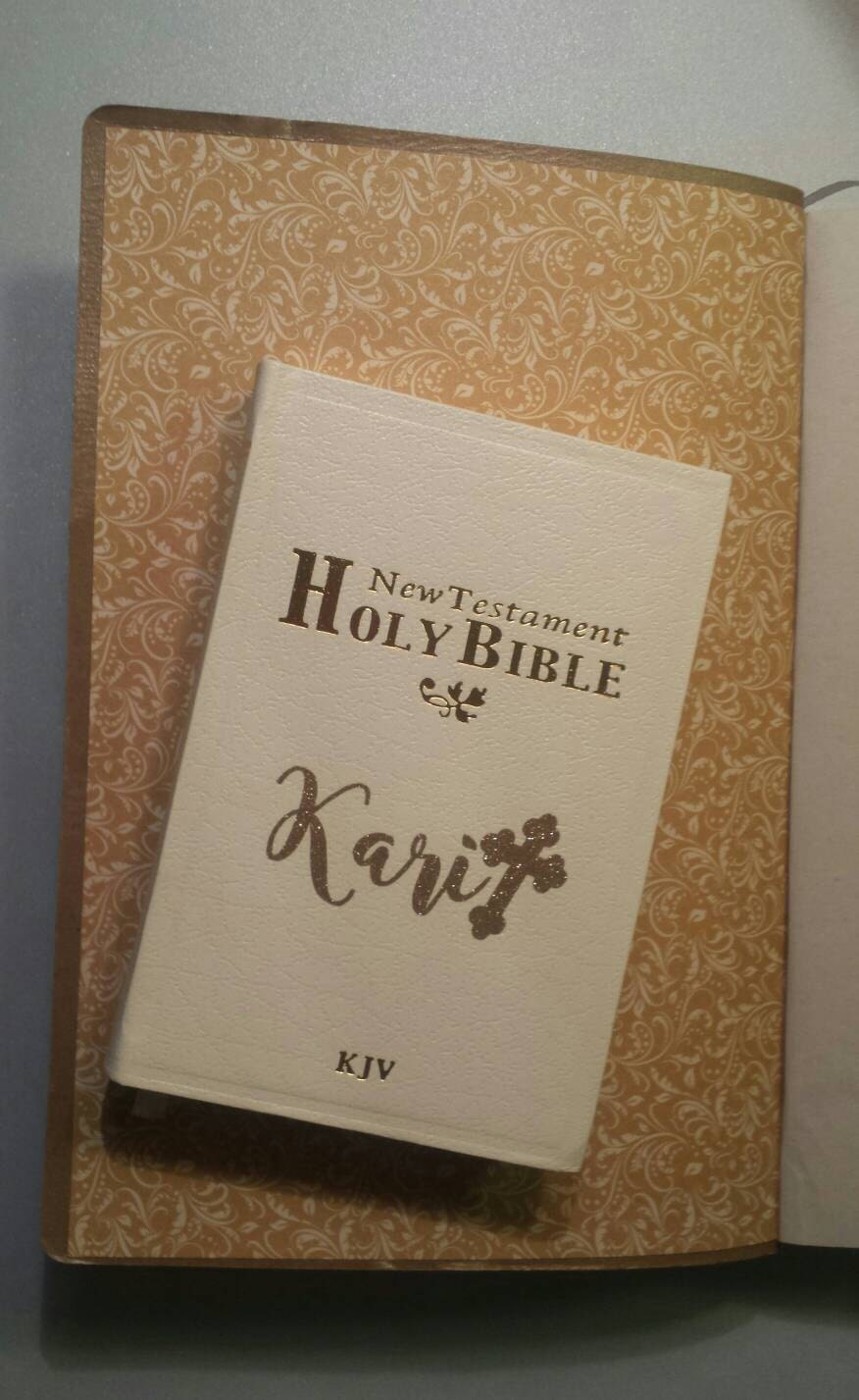 This is a bible keepsake. (White Bible with pink monogram is just to show the vine monogram option. (That exact Bible is not available in this listing)